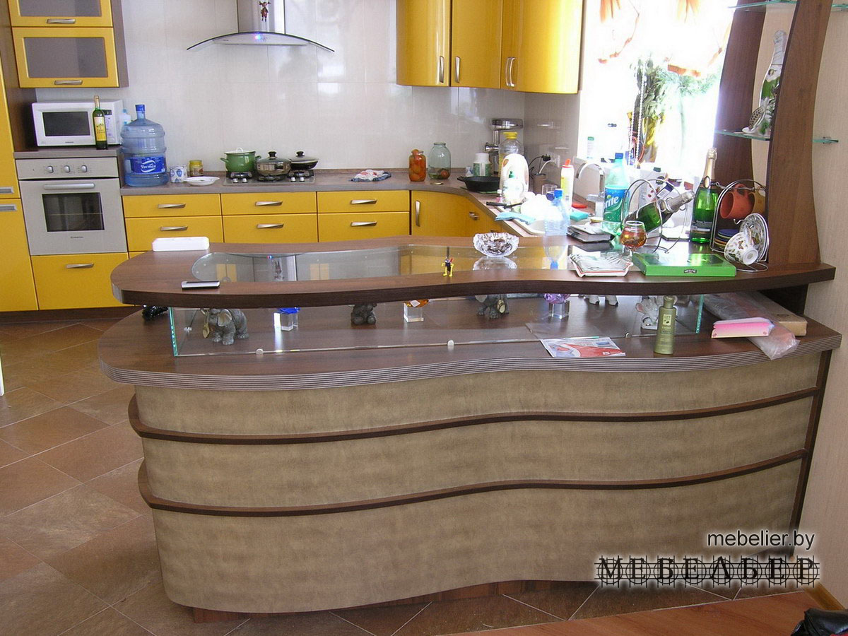 «МЕБЕЛЬЕР» может предложить конструкции для любого типа интерьера от стиля «Бунгало» до откровенного «китча». При этом для выразительности используются самые разнообразные материалы – от натуральных (бамбук, дерево, кожа, стекло) до последних достижений мировых лидеров в производстве отделочных материалов (искусственные фактуры, имитации кожи и тиснений, пластик). Особый эффект производят скрытые от глаз подсветки в темное время. Использование необычных светильников (диодные, светящиеся шнуры и т.д.) создают неповторимую таинственную атмосферу располагающую к неторопливой беседе в полутьме за чашечкой кофе или бокалом вина.