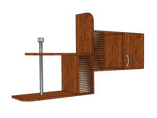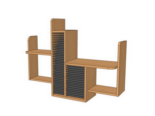 П 001 и П 003 – навесные полки с держателями дисков и полками для книг можно использовать как самостоятельный элемент или в комплекте с любым из столов в соответствии с дизайном и функциональной необходимостью.