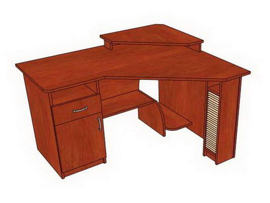 СК 002 – стол компьютерный угловой (1300х1100) аналог ск001 с уже встроенной тумбой с одним выдвижным ящиком и распашной дверкой, держателями для СД дисков и полкой для системного блока. Модель отлично подойдет для студентов и в качестве рабочего места менеджера.