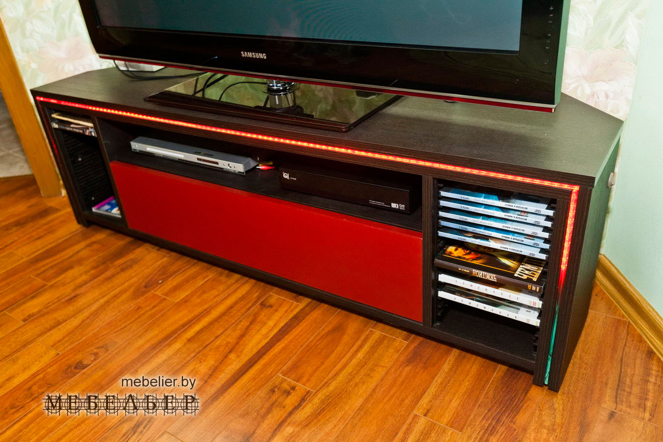 - Удобное размещение коробок с DVD и выдвижных ящиков с боксами для прочих носителей информации